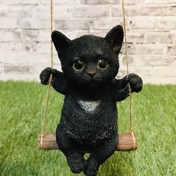 ベニーズキャット ブランコ 黒 猫 置物 可愛い リアル アニマルオブジェ インテリア かわいいネコ 動物 子猫 仔猫